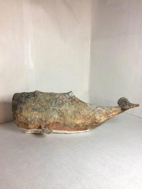En fantastisk kaskelothval i keramik, skabt i brune nuancer. Et fantastisk dyr, der kan blive 20 meter langt og alligevel ha' en vis elegance over sig.